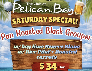 Just $34 plus tax for delicious Pan Roasted Black Grouper with key lime Beurre Blanc & Rice Pilaf + Roasted carrots!